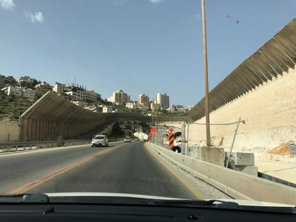 Running a tad late, Clare and I scurry up to the iconic Jerusalem YMCA where we meet Becca (the third booking), our guide Mohammad, and his son who tagged along for a ride into town. Mohammad is eager to get underway, so he quickly gives his son a kiss goodbye before shepherding us to his personal car parked nearby, and soon we’re on the road. Upon leaving the city, it’s impossible to ignore the massive walls and fences that nearly enclose the highway and provide a cocoon of protection from any possible roadside threat…not an easy place to hitchhike, I think to myself, but then waiting for a ride in the desert never is.