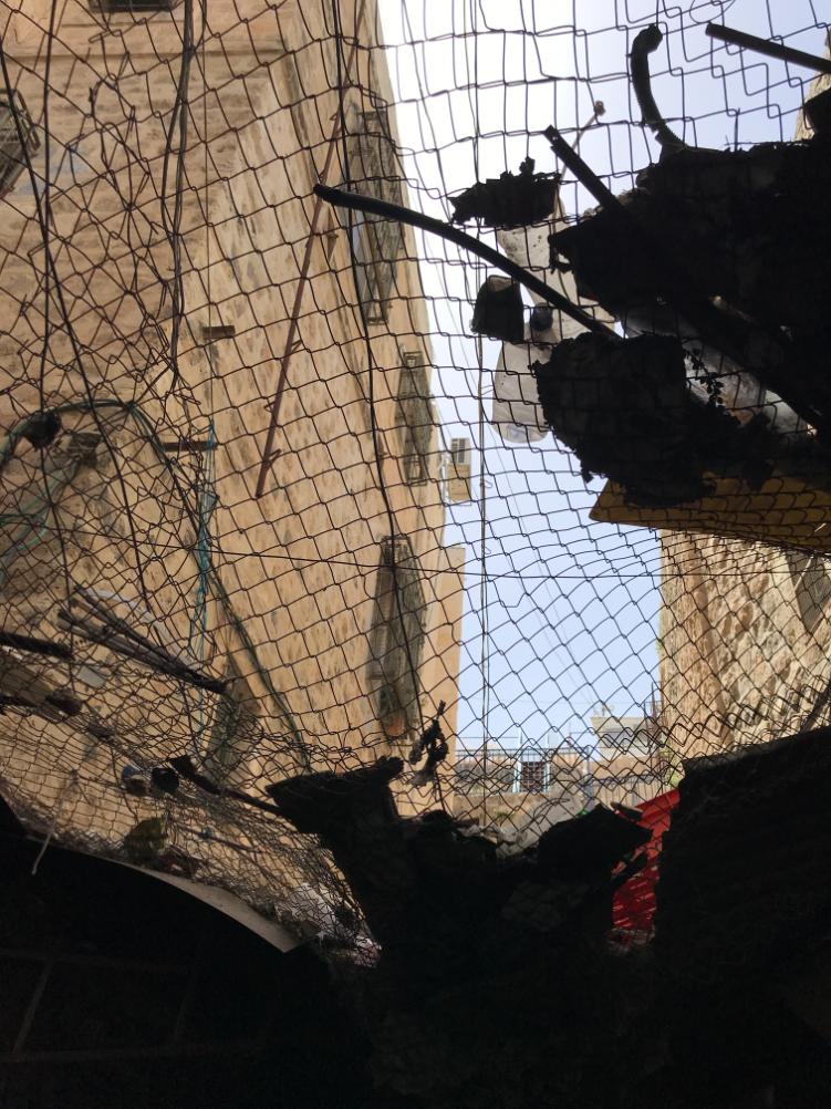 “Naturally we inform the police, but nothing is ever done, so we must take action into our own hands. We erected the wire cages to provide some protection against the many rocks, rubble, and garbage that are thrown down all the time, but the Jewish people are persistent. They began to throw cups and bags full of liquid, which of course pass through the cages and are difficult to divert. The worst is urine, because of the smell. If any gets on my goods, they’re ruined.”