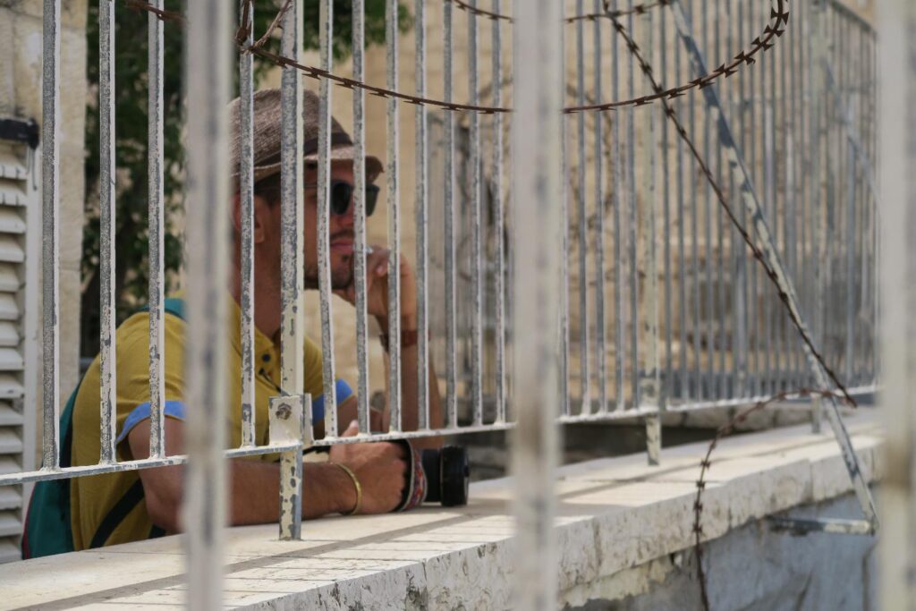We come to a military checkpoint, flanked by long trains of steel fencing and concrete barricades to help separate and organize what must usually be a teeming crowd, though not so today. We empty our pockets, pass through a metal-detector, and then hand over our passports. There’s a bit of confusion about what we are doing in this city at this time of quiet, but our foreign IDs and warm smiles eventually win them over and we are granted access to the road.